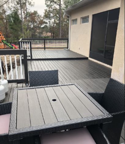 Several years ago, we decided to add a pool to our yard. Our house sits on a small hill, the lower end of the hill in the back, and we have a wooden deck that was approximately 1,100-square feet with three different levels. Our lanai was screened in and opened to the deck, and we have two doors in the family room that opened onto the deck as well. We love the deck.