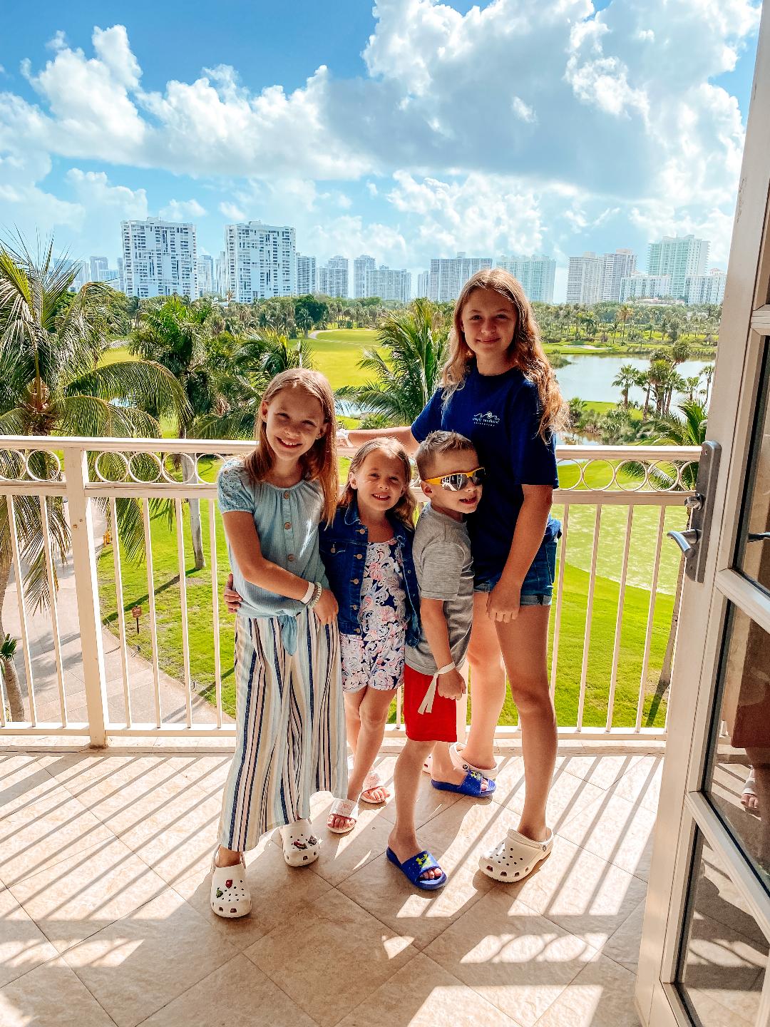 As for the room at the JW Turnberry, we book the Junior Suite with two beds. We have 700-square feet, two queen beds, and a living room area with a sofa bed for the twins. We also have a beautiful balcony, and there is a generous desk area and living space. The bathrooms here are a MAJOR win for me. A separate standing shower, oversize tub, massive vanity, and its own water closet with a bidet always wins for us. Bathroom space is so important when there are six people getting ready at the same time. I also prefer a suite to two connecting rooms, too, because we kind of love the ‘slumber party’ feel we have the with the kids on vacation. There is a lot of giggling, and a lot of quality time, and everyone has the best time. All four kids always love these trips so much, and I love how close it makes us feel as a family. We make so many amazing memories.