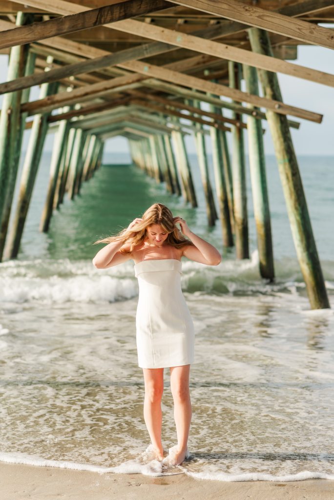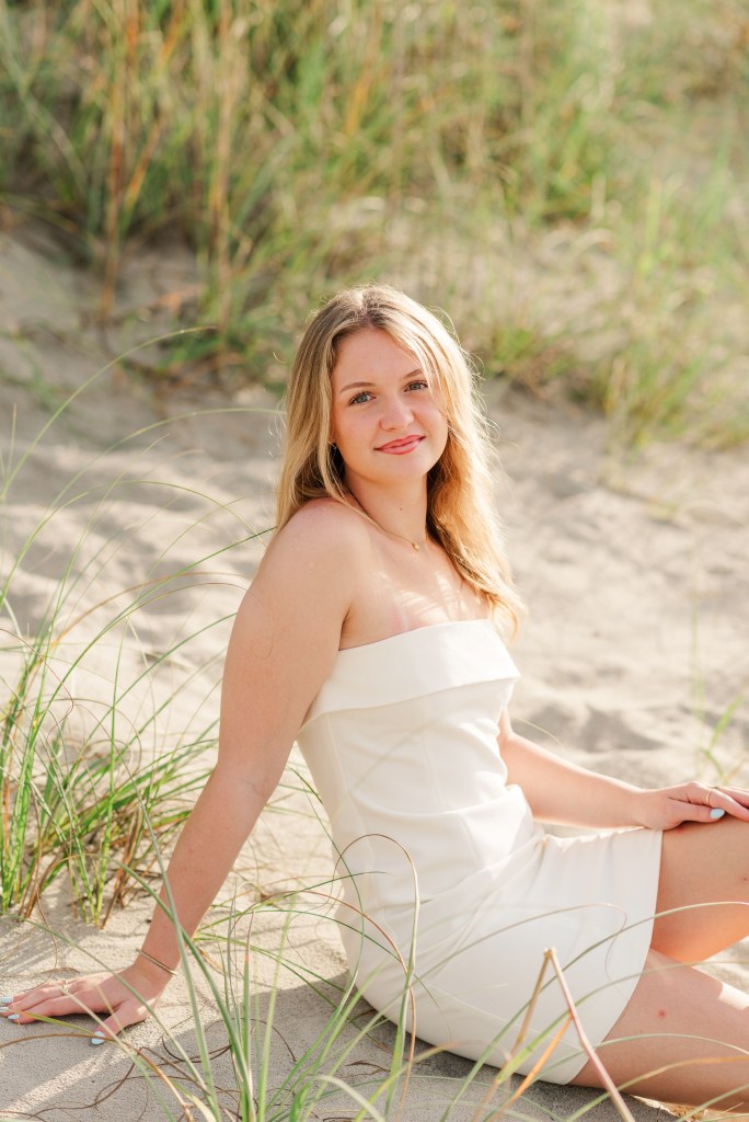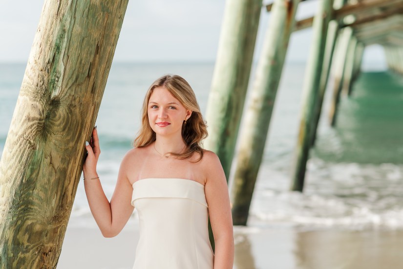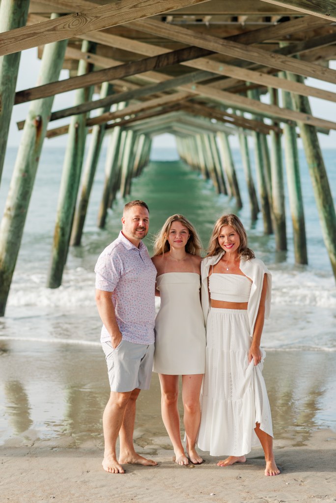 We knew immediately where we wanted to take Addy’s senior photos this year – our favorite island in the Outer Banks. We spend every summer up there soaking up the sun, boating, tubing, catching blue crabs, and eating entirely too much while we make the best memories. It’s the simplest, most laid-back trip we take, but it’s everything good about summer and family – and we knew immediately her photos would be in the OBX. At sunrise. And she even let her parents grab a pro photo with her (though not as many as her boyfriend because he travels often with us these days, too).