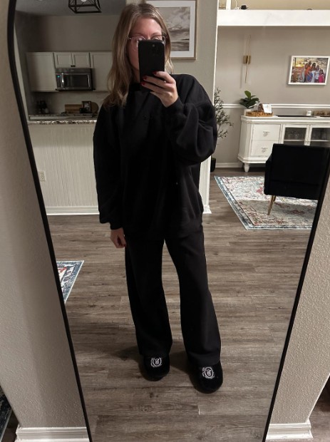 I had to go back and order this set in multiple colors because I love it so much. It’s been so cold in the Sunshine State that I’ve holed up at home wearing this outfit on repeat. It’s so soft and warm, but I also still feel marginally cute wearing it while also being as fucking lazy as possible. Five stars – and now I’m mad because I see that it’s on MAJOR sale right now and I should have waited to order more! I’m wearing an XS pant and a S top for an oversized fit.