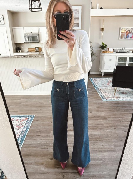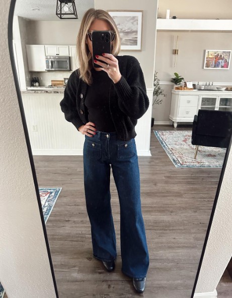 Truth be told, I wasn’t sure I’d like these as much as I ended up loving them. I figured I’d return them, but I’ve only owned them for a little more than two weeks, and I’ve worn the absolute hell out of them. They are SO SOFT and don’t feel at all like jeans. I can’t use words to describe how soft they are, so I’ll try my best to use words to give you a small idea. They’re like wearing very thin sweatpants but also somehow softer and lighter at the same time. And the drape is GORGEOUS.